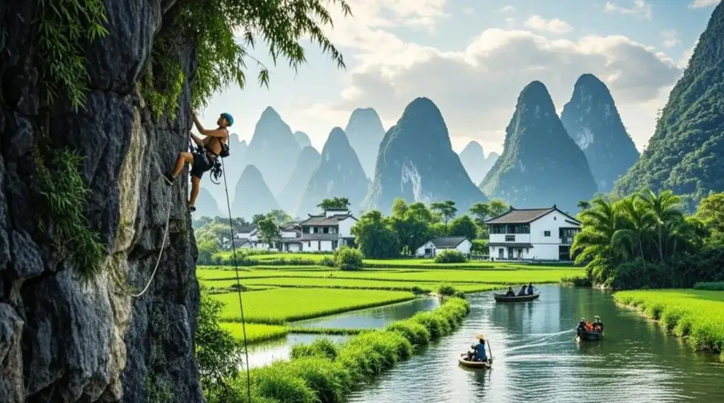 Yangshuo, located in the Guangxi Zhuang Autonomous Region of China, is a world-renowned climbing destination known for its limestone karsts and scenic landscapes. The area offers a wide range of climbing routes, from easy beginner routes to challenging multi-pitch climbs. The climbing season extends from spring through autumn, with temperatures and weather conditions varying throughout the year.